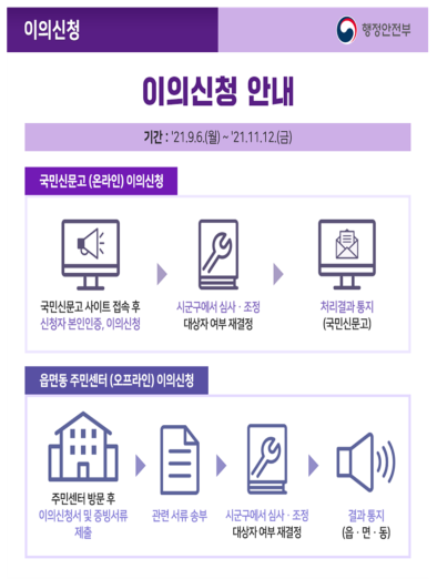 5차 재난지원금 신청 결과 이의신청 운영 예정