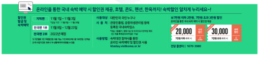 ☞대한민국구석구석누리집 > 숙박할인권 안내페이지 바로가기