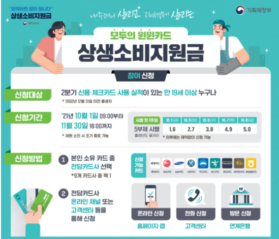 상생 소비지원금은 5차 재난지원금의 하나로써 신청 대상자, 신청 방법, 지급 형태, 사용 방법 등 하나하나 안내해드리겠습니다.